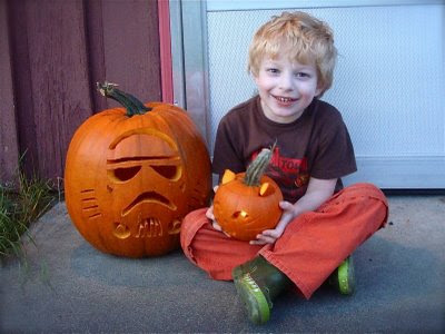 Stormtrooper and cat pumpkins. Click through to see ho great they look lit up.