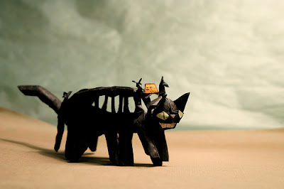 "Attack of the Kraken" papercraft made from one piece of paper by Brian Chan. He takes commissions and also sells prints, such as this image of a Nekobus papercraft creation: