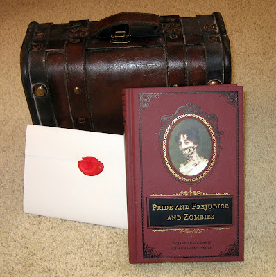 It's a clever promotion for Pride and Prejudice and Zombies: The Classic Regency Romance - Now with Ultraviolent Zombie Mayhem! Copies are only $7 at Amazon and of course would make a perfect holiday gift.