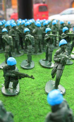 We’re spreading plastic Army Men around the country and around the globe as small, everyday reminders of the ongoing horrors of the war in Iraq and to serve as tools to foster dialogue, action and resistance to the war. Here in the United States we’re encouraged to forget about the war, to go on with our lives, to “go shopping.” But what if everywhere people went there were little plastic Army Men nudging them to remember that we’re waging war? At Home Depot, on the gas pump, in the 7-11, at the post office, on the hood of the car, in the public restroom, at the movie theatre, in the produce section of the grocery store … in your neighborhood …?