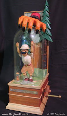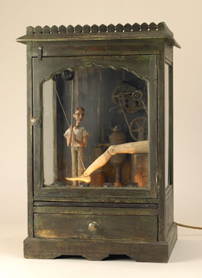 "Don't Tase Me Bro" automata by Jon Haddock. His gallery is full of wonderful creations. Below is "Last Ride" part of a "collection of resin figures depicting traumatic events in a style reminiscent of early 1930's animated cartoons":