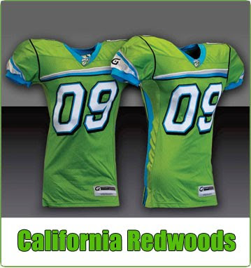 Above are the heinous logos and jerseys for two of the four UFL teams, the California/San Francisco Redwoods and the Florida/Orlando Tuskers. The other two teams in the league have the same design, with different colors. So, somewhere someone saw the horrendous logo and jersey design and decided it was good enough for every team in the league.