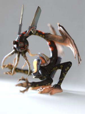 A Cthuloid, created as a Spore creature by Hellopike, and then exported out of the game and rendered in Mental Ray by Ocean Quigley. At the same site, check out Mike Khoury's render of a bunch of stylized military vehicles. Relatedly, if you'd like to have a Spore creature turned into a toy, you can order one here. The results are apparently pretty good. Via these sites.