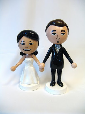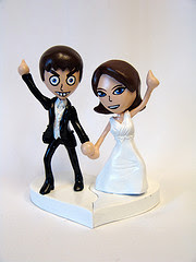 Disco-dancing wedding cake toppers by Paul Pape, who takes commissions.