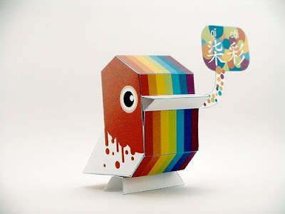 Colorful bird paper toy. One of several designs that can be downloaded here.
