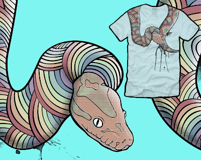 "Rainboa constrictor" t-shirt design by gaunty, currently up for vote at Design by Humans.