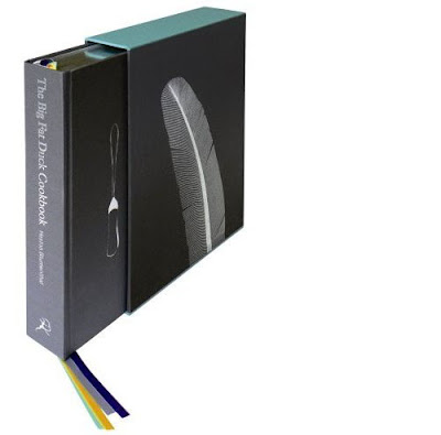 "The Big Fat Duck Cookbook is the biggest (10 pounds with box), the most expensive ($250) and the most flamboyant (four brightly colored silk marker ribbons, uncountable full-page color illustrations and gatefolds, mainly caricatures of Mr. Blumenthal gliding through a dreamland of foods) cookbook in a bumper year. But like its author, who turns out to be a clear and even affecting writer, there is gravity holding the rocket in orbit. In the back, you will find deadly serious essays on such matters as the effect of heat on meat protein or "ice cream science," by himself and his entourage of university food scientists along with detailed rundowns on new kitchen tools such as refractometers. But all of this is stagesetting and infrastructure for the recipes with the wacko names, the sci-fi techniques and the eureka tastes and flavors... Makes you want to call Bray immediately to get a table at the earliest opportunity, which is two months from now. Meanwhile, there's the book."