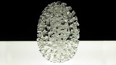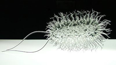 Swine Flu and E. Coli as glass sculptures. See also: HIV and SARS.