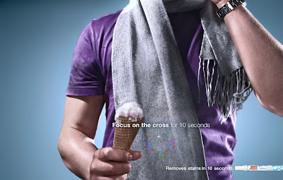 Clever prints ads for the Ariel Pocket stain remover. Stare at the white crosses for 10 seconds and the stains will disappear. Via.