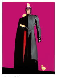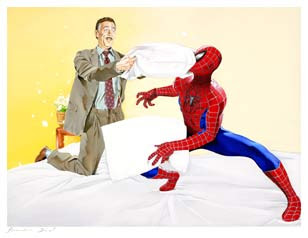 Homey and other famous clowns star in Dark Vomit's The Clown's Last Supper. It and various other paintings are on display and sale at Copro Gallery. DV also has various items on sale at Etsy including this $30 four-eyed cat collector's plate: