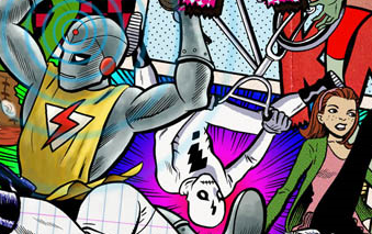 This is a small part of a colorful new Madman pinup by Jim Rugg.
