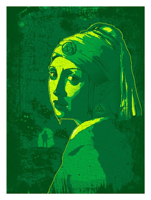 I guess it's homage day. Clint Wilson channels Johannes Vermeer in this Zelda with a Pearl Earring print on sale here. Via.