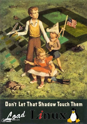 "Don't let that shadow touch them." Clever anti-Windows propaganda ad for a contest at