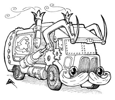 trash truck obsessed son, I requested that Doktor A draw his interpretation of a trash truck. And here it is: