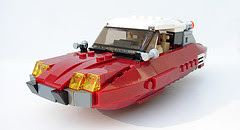 Lego robot with jetpack and gun arm by Dan Rubin. Check out his Lego Alien Fleet Lictor's Ship. Via.