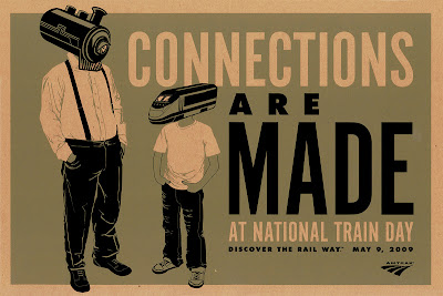 Posters for National Train Day (it's tomorrow) by Kelly Cooper and Arnold Worldwide. Anybody else get a creepy vibe from the final "connections are made" poster? Via.